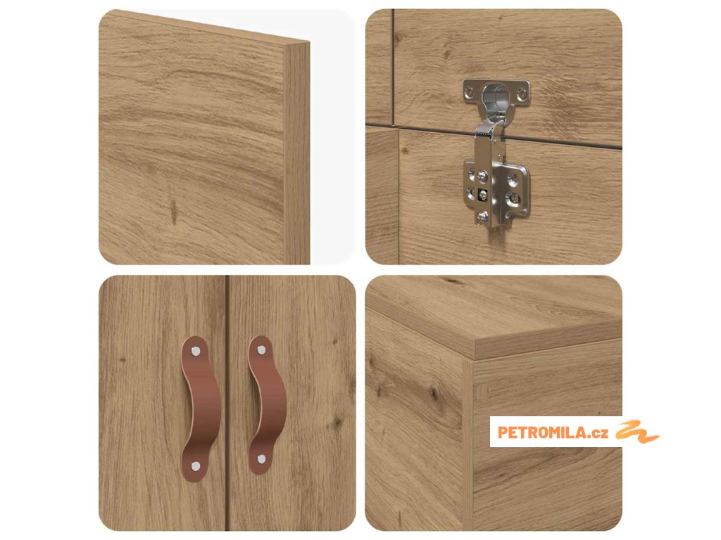 - Součásti: Tato postel má úložný prostor se sklápěcími dveřmi, takže je snadno přístupná a praktická. Robustní dveře z inženýrského dřeva a úchyty z umělé kůže dodávají stylový dotek.
