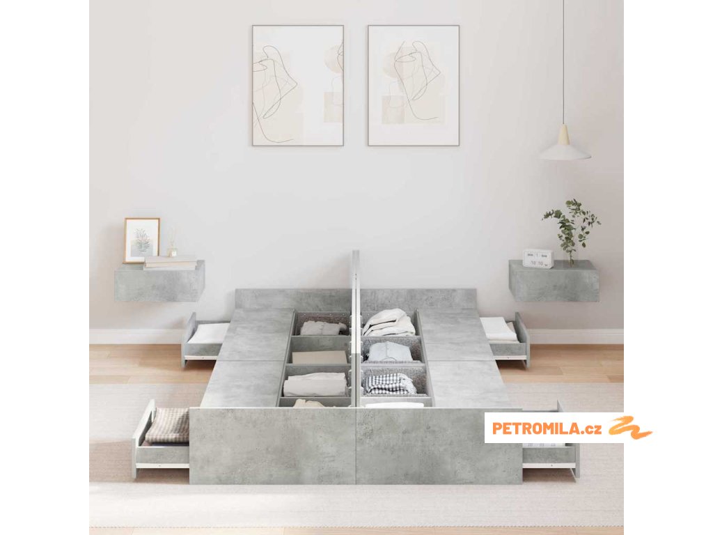 - Komplexní úložná řešení: Postel má spoustu integrovaných zásuvek, což maximalizuje místo v ložnici. Tyto úložné boxy z inženýrského dřeva vám umožní pohodlně skladovat věci jako ložní prádlo nebo oblečení a udržet místnost v pořádku.