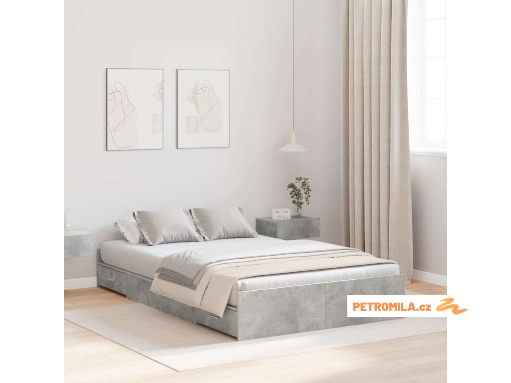Rám postele s úložným prostorem Betonově šedá 120 x 200 cm