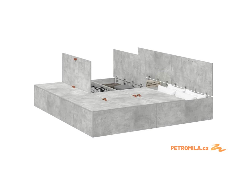 Rám postele s úložným prostorem Betonově šedá 180 x 200 cm