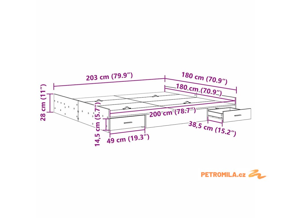 Rám postele s úložným prostorem Betonově šedá 180 x 200 cm