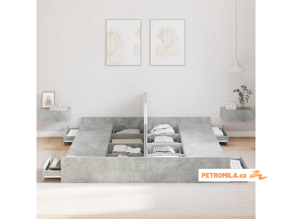 Rám postele s úložným prostorem Betonově šedá 200 x 200 cm