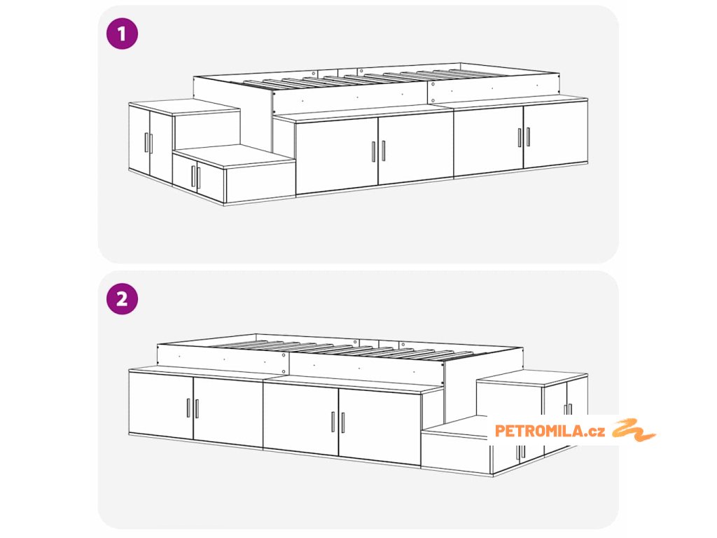 - Vestavěné výklopné dveře: Dveře rámu mají hladké úchyty pro snadný přístup k úložným prostorům pod postelí. Snadno tak přehledně uspořádáte své věci a zefektivníte prostor.