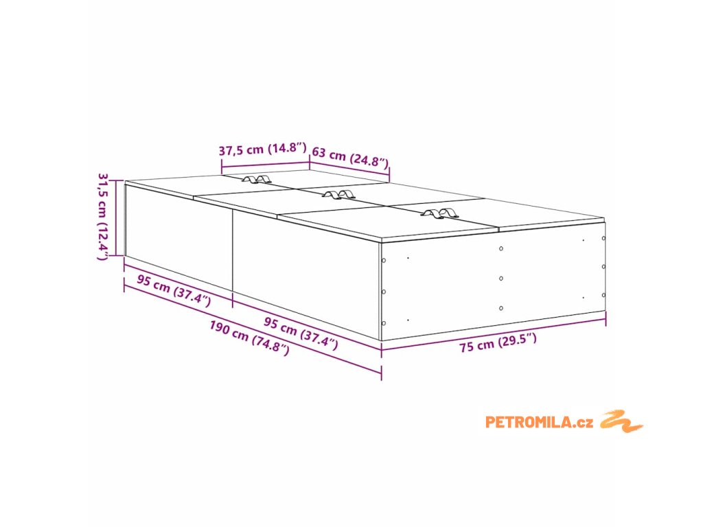 - Celkové rozměry: 190 x 75 x 31,5 cm (D x Š x V)