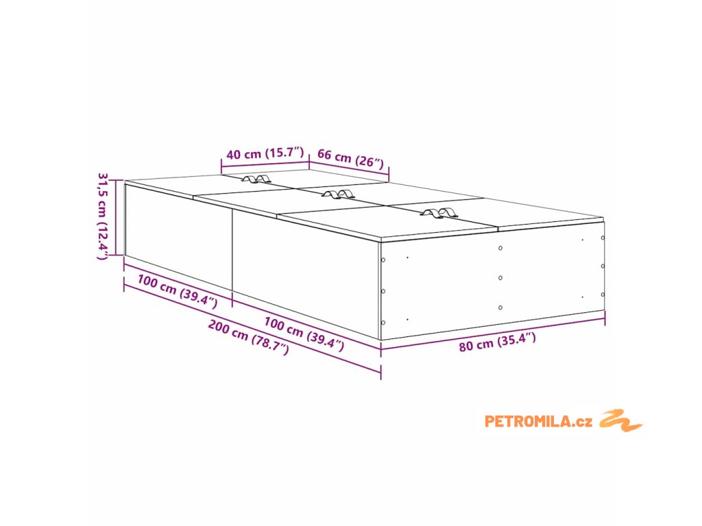 - Celkové rozměry: 200 x 80 x 31,5 cm (D x Š x V)