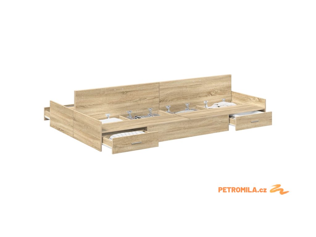 - Komplexní úložná řešení: Postel má spoustu integrovaných zásuvek, což maximalizuje místo v ložnici. Tyto úložné boxy z inženýrského dřeva vám umožní pohodlně skladovat věci jako ložní prádlo nebo oblečení a udržet místnost v pořádku.
