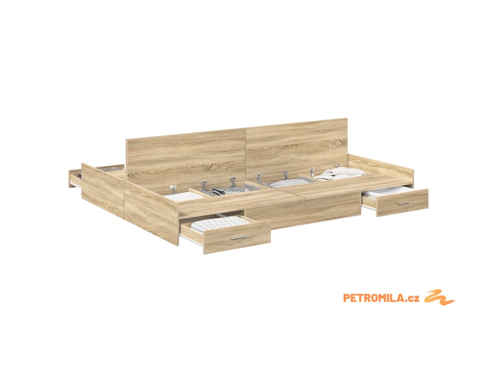 - Komplexní úložná řešení: Postel má spoustu integrovaných zásuvek, což maximalizuje místo v ložnici. Tyto úložné boxy z inženýrského dřeva vám umožní pohodlně skladovat věci jako ložní prádlo nebo oblečení a udržet místnost v pořádku.