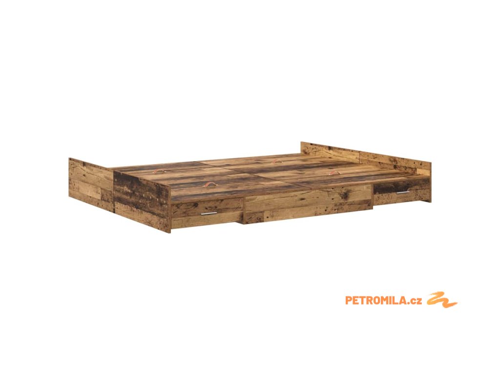 Rám postele s úložným prostorem s čelo Staré dřevo 140 x 190 cm