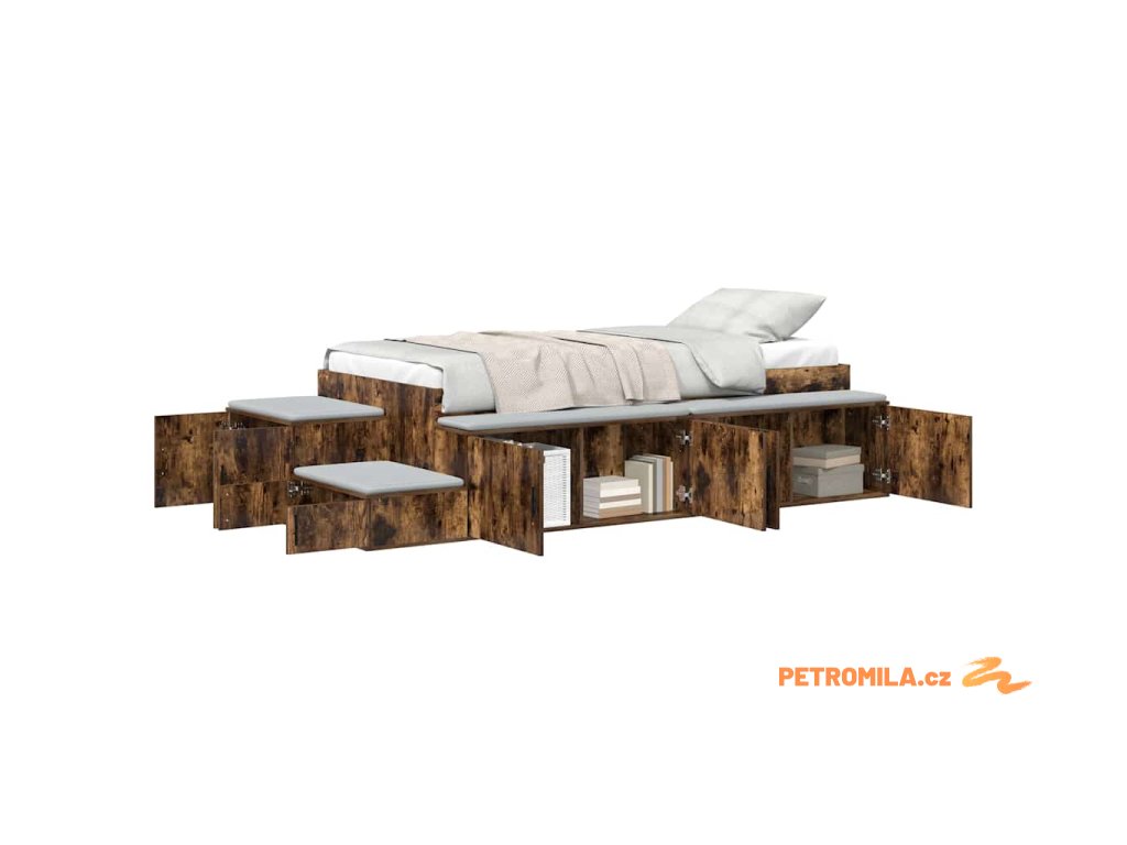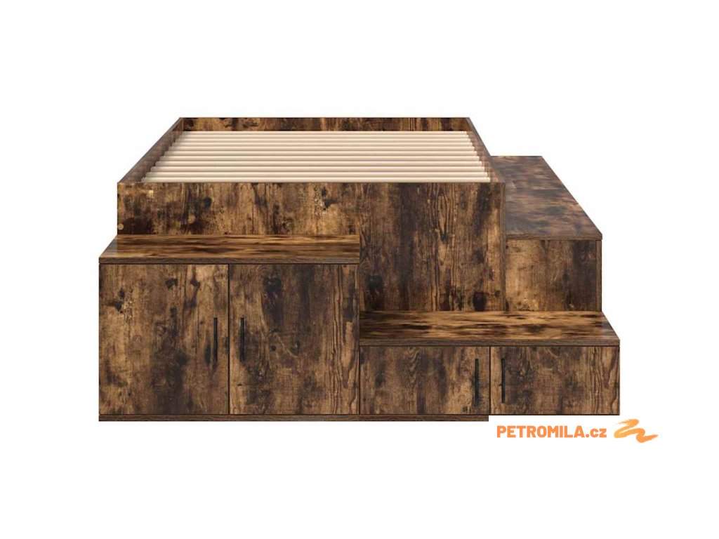 Rám postele s úložným prostorem s úložištěm Kouřový dub 75 cm