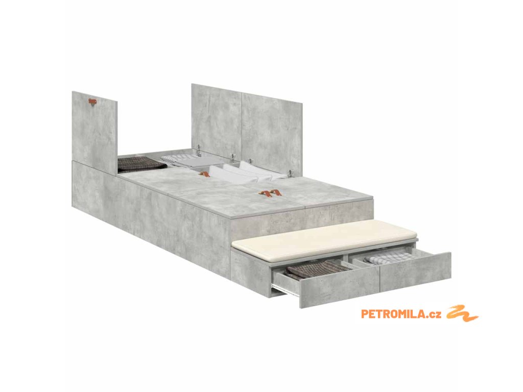 Rám postele s úložným prostorem se zásuvkou Betonově šedá 80 cm
