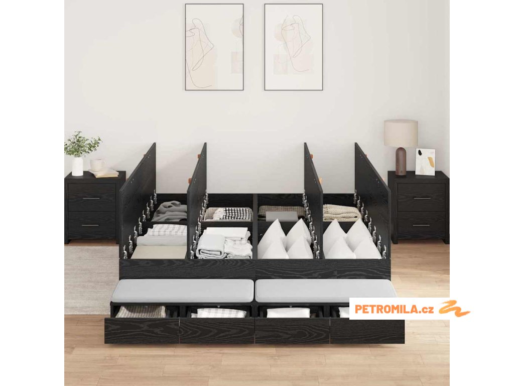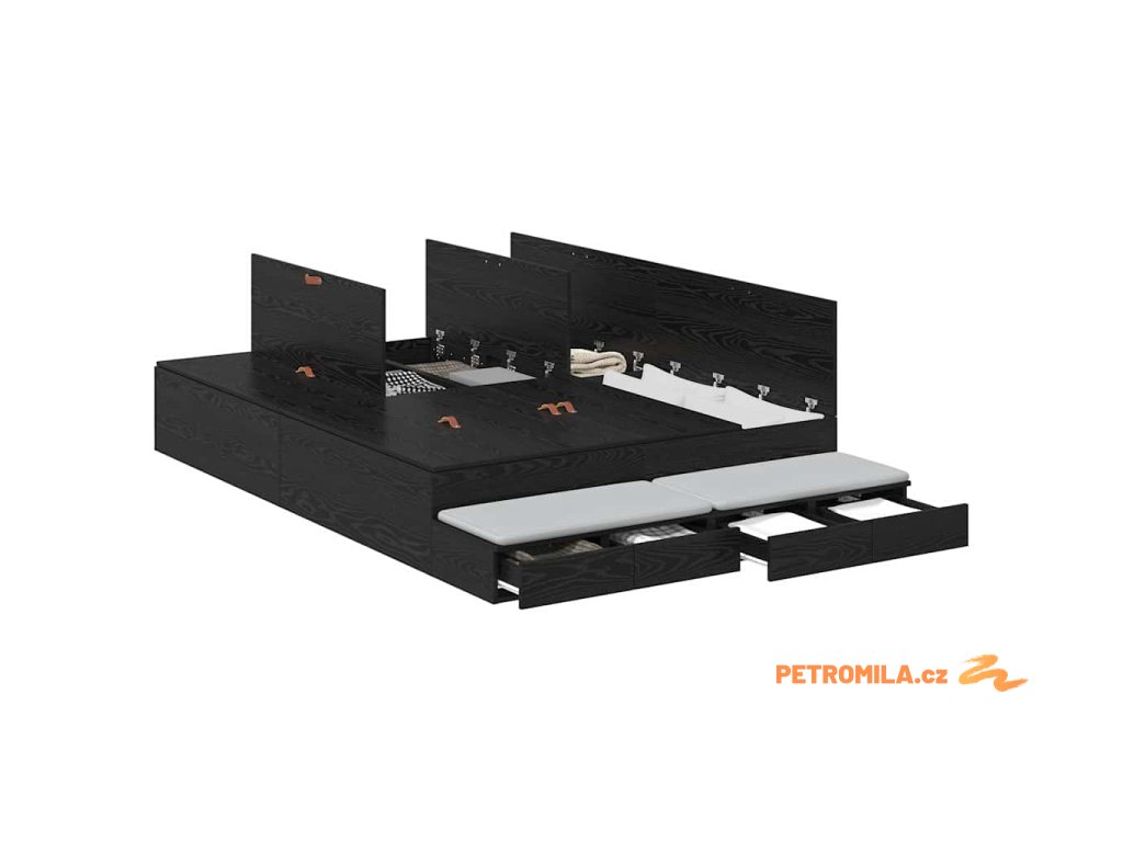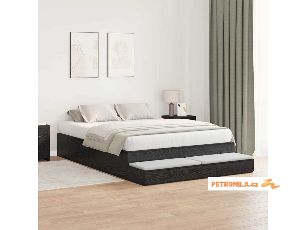 Rám postele s úložným prostorem se zásuvkou Černý dub 160 cm