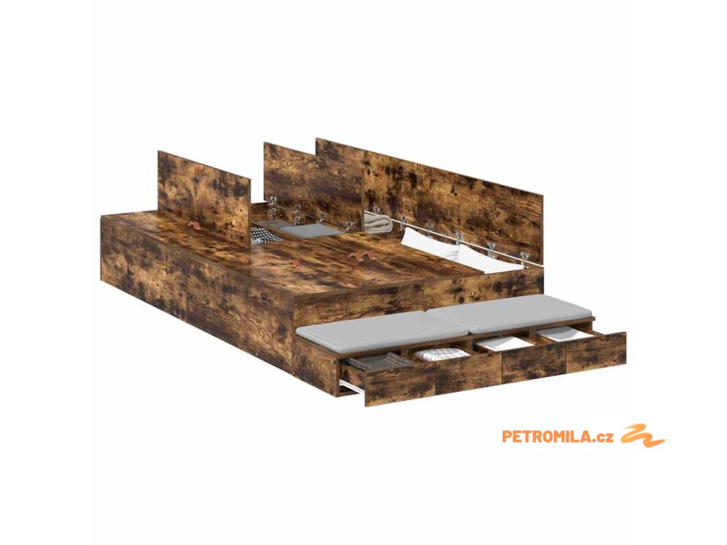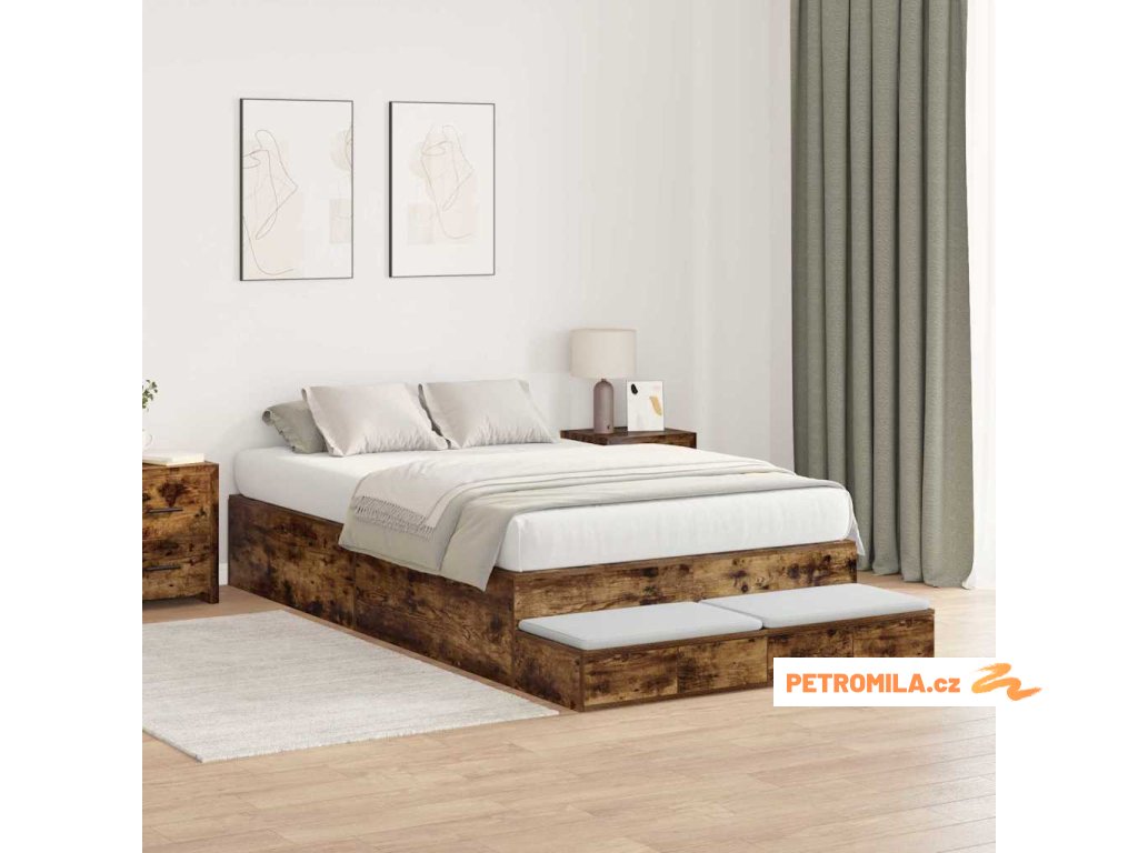 Rám postele s úložným prostorem se zásuvkou Kouřový dub 120 cm