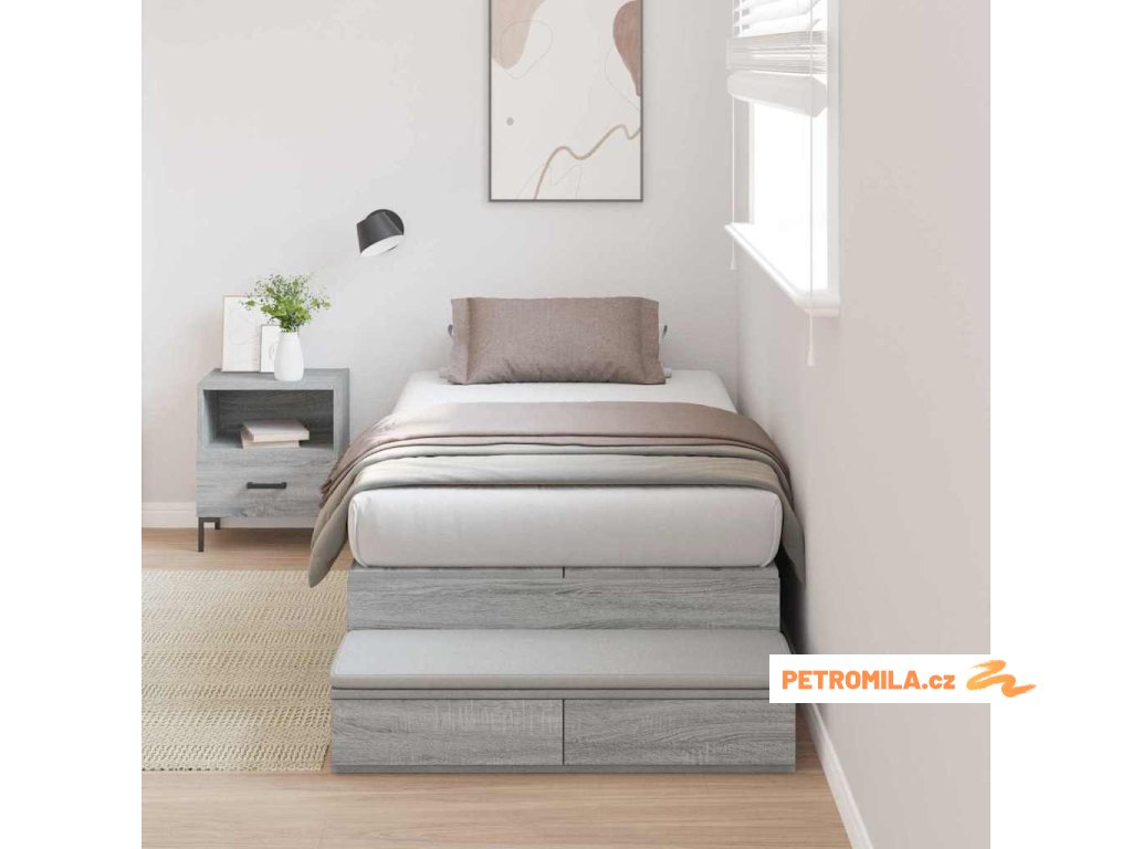 Rám postele s úložným prostorem se zásuvkou Šedá Sonoma 100 cm