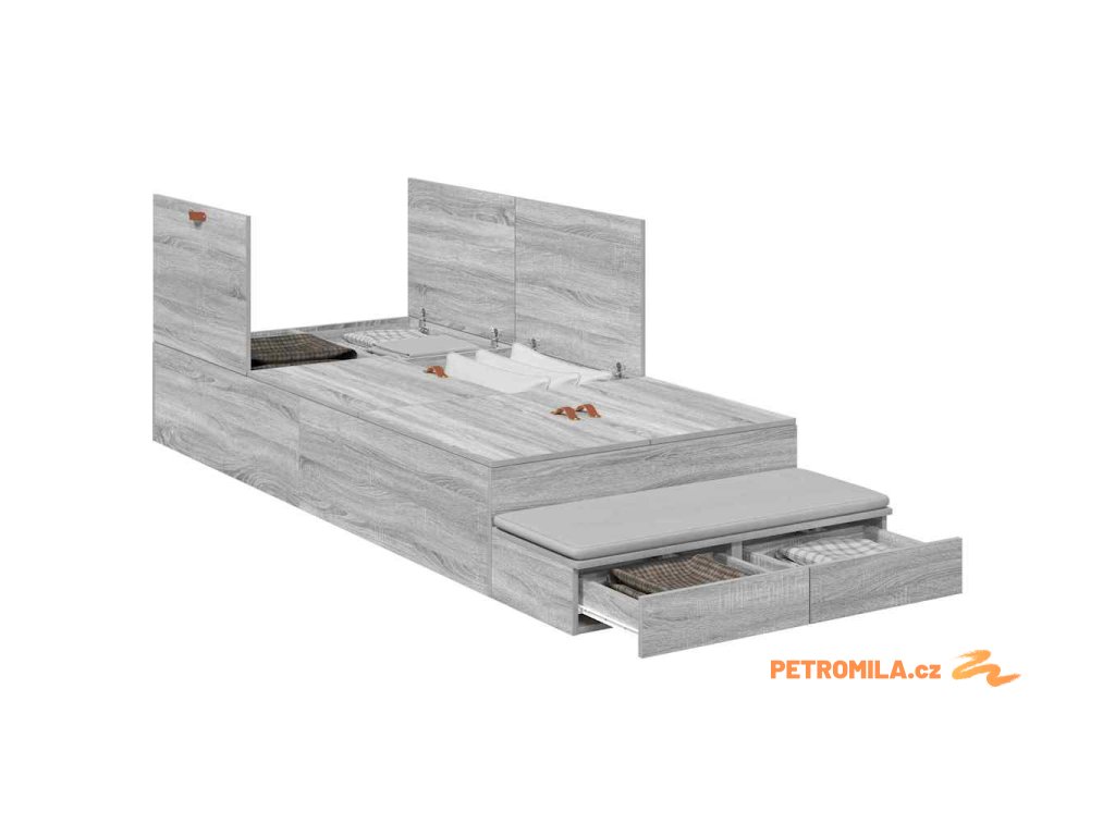 Rám postele s úložným prostorem se zásuvkou Šedá sonoma