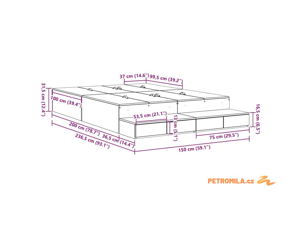 Rám postele s úložným prostorem se zásuvkou Sonoma dub 150 cm