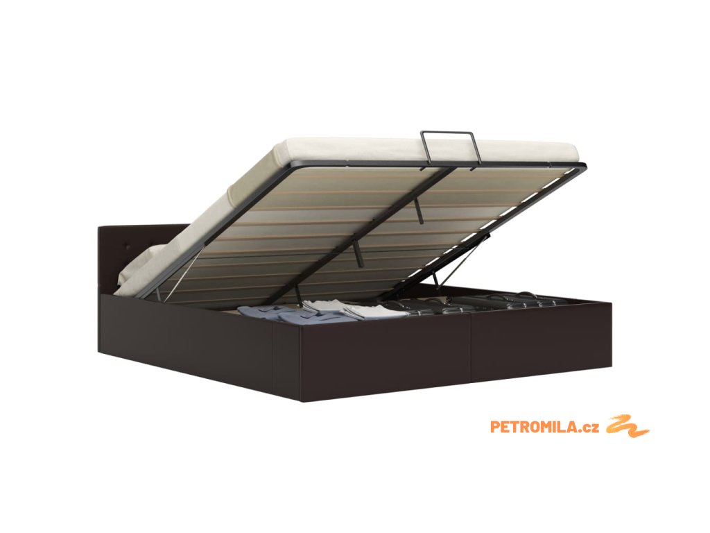 Zařiďte si ložnici v působivém moderním stylu s touto hydraulickou postelí z umělé kůže! Jedná se o manželskou postel, která vyniká svým jednoduchým, avšak stylovým designem a pevnou konstrukcí, je totiž vyrobená z pevné a robustní MDF.