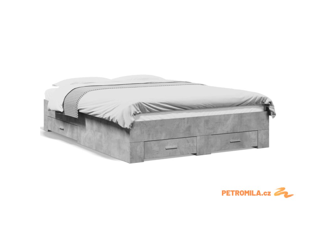 Rám postele se zásuvkami betonově šedý 120 x 200 cm kompozit