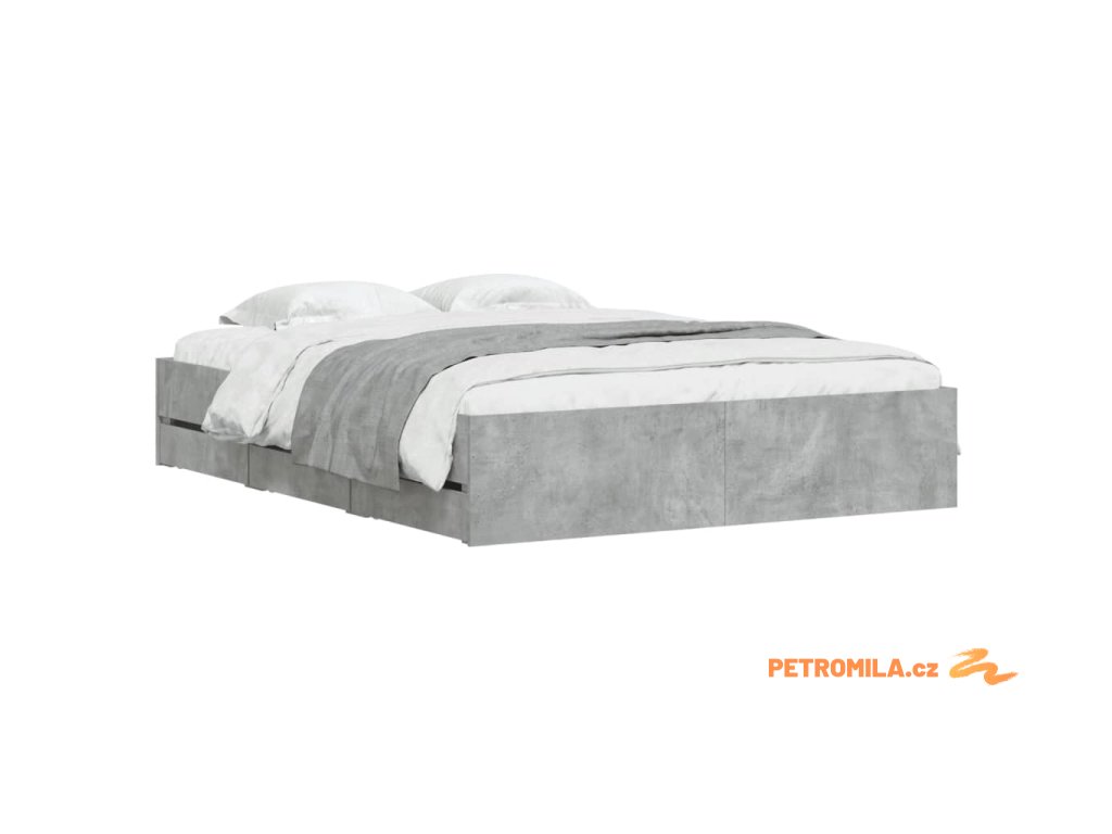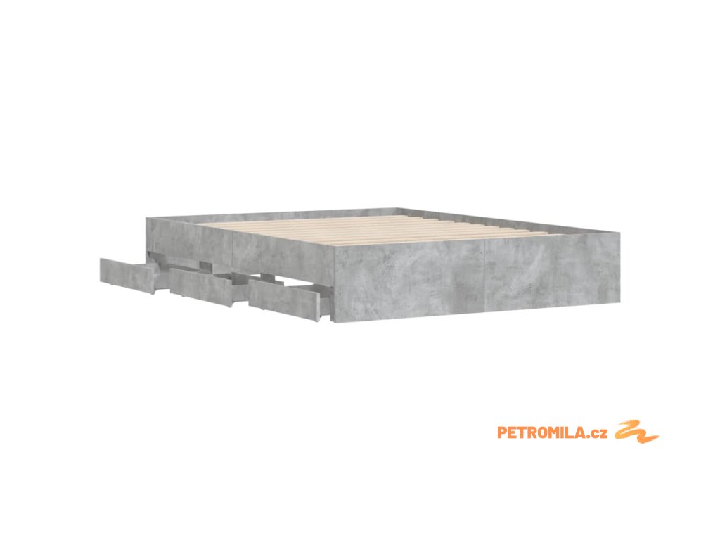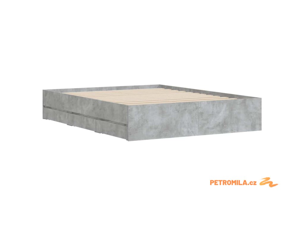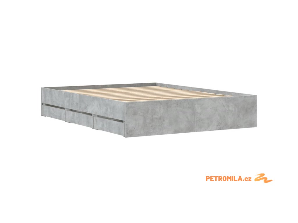 Rám postele se zásuvkami betonově šedý 140 x 190 cm kompozit