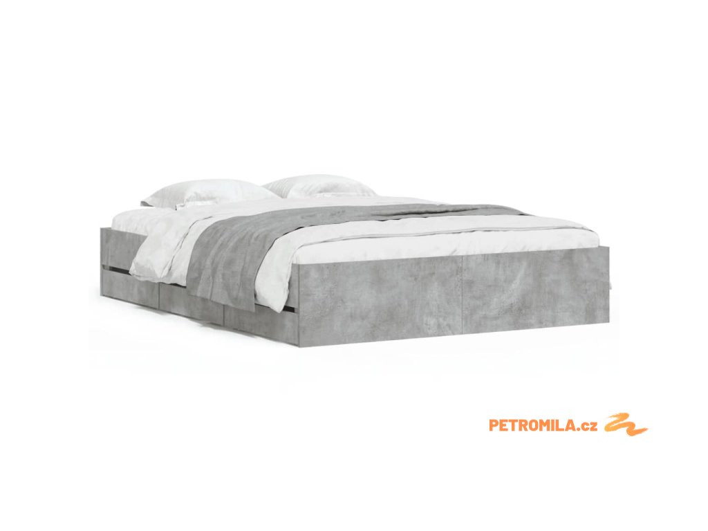 Rám postele se zásuvkami betonově šedý 150 x 200 cm kompozit