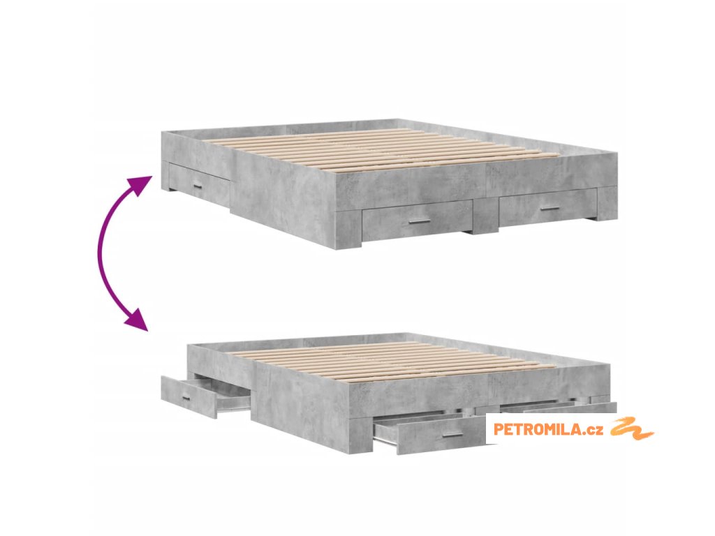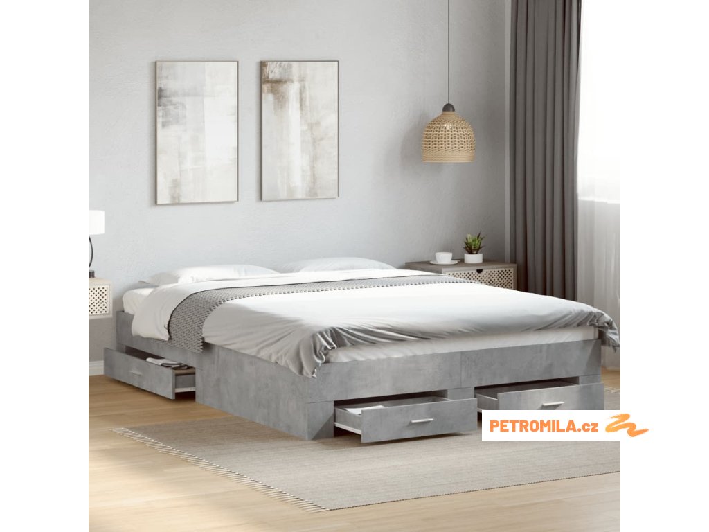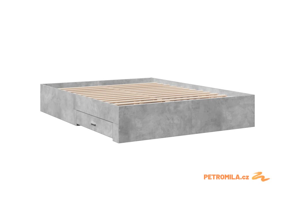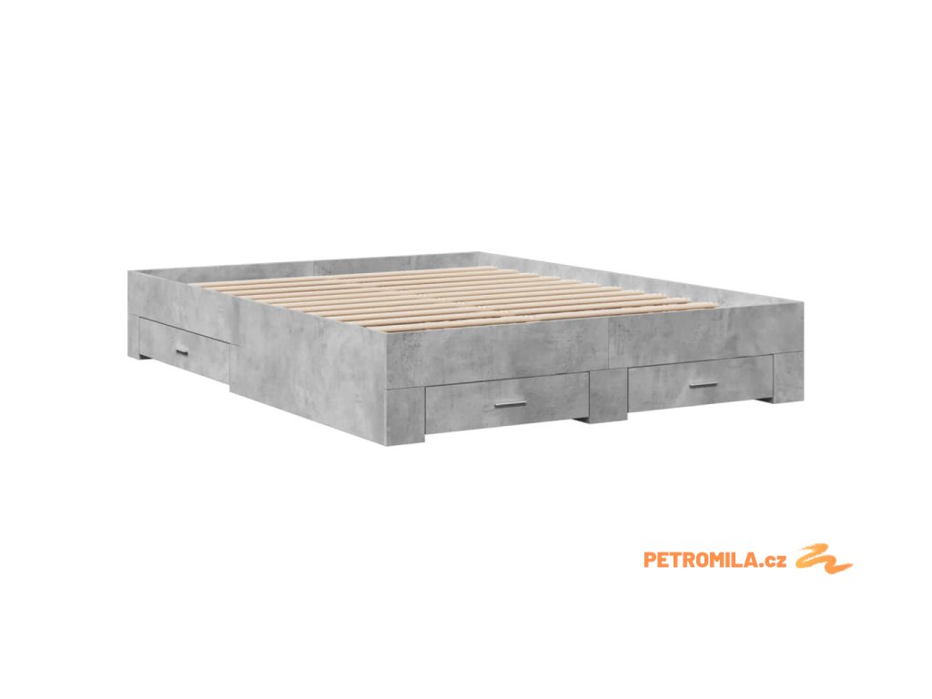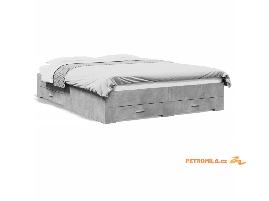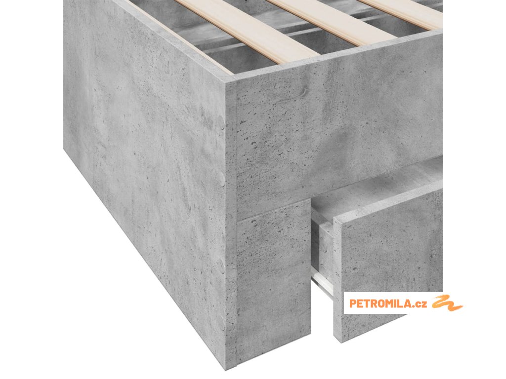 Rám postele se zásuvkami betonově šedý 150 x 200 cm kompozit