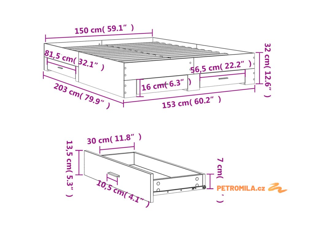 - Rozměry zásuvky postele (S): 56,5 x 31,5 x 13,5 cm (D x Š x V)