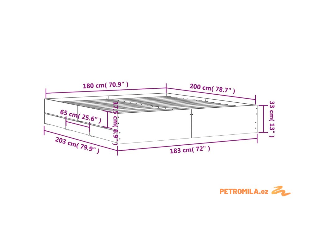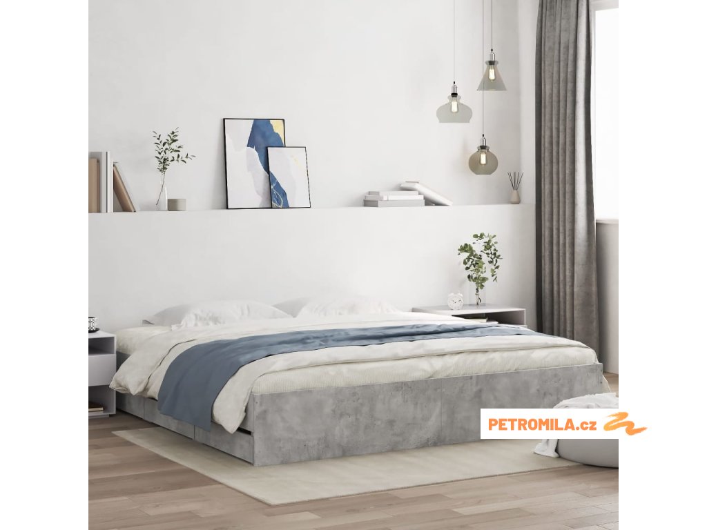 Rám postele se zásuvkami betonově šedý 180 x 200 cm kompozit