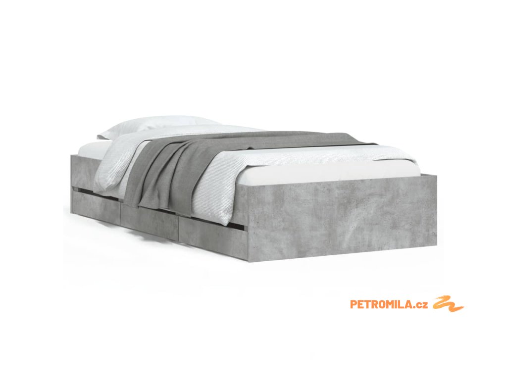 Rám postele se zásuvkami betonově šedý 90 x 200 cm kompozit