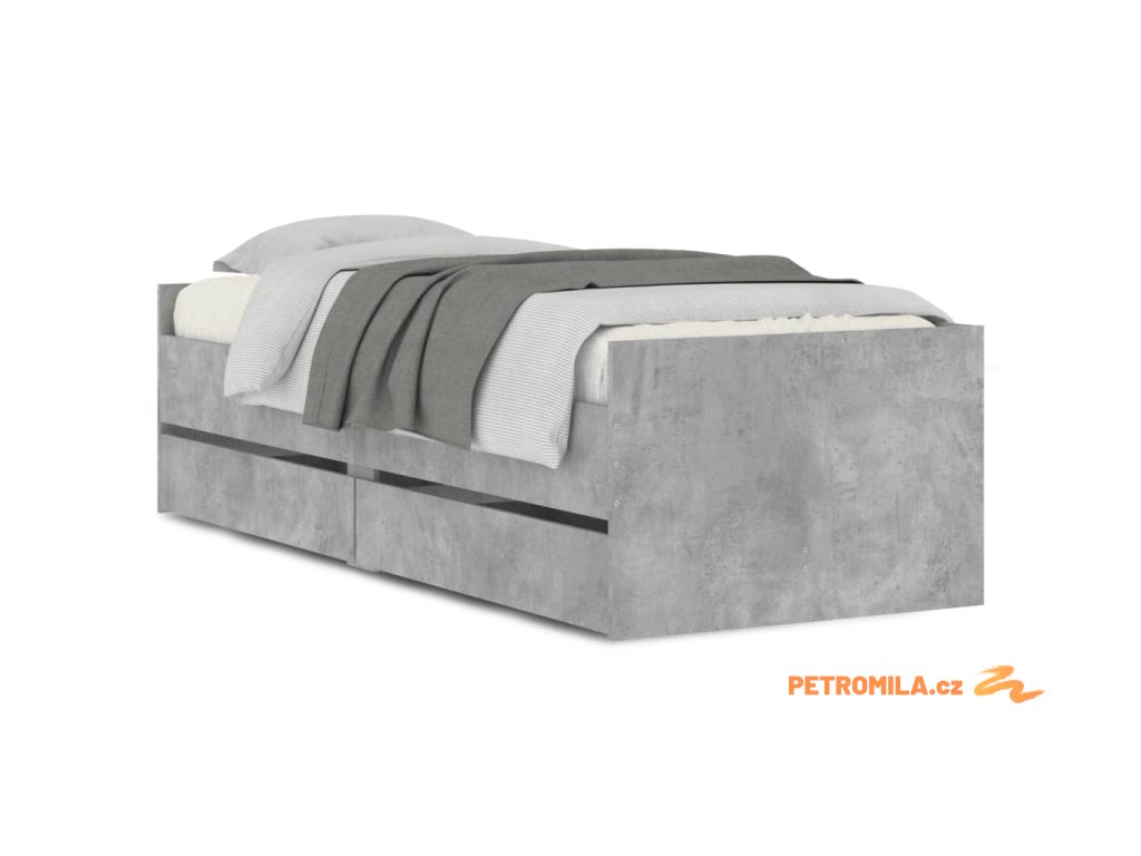 Rám postele se zásuvkami betonově šedý 90 x 200 cm