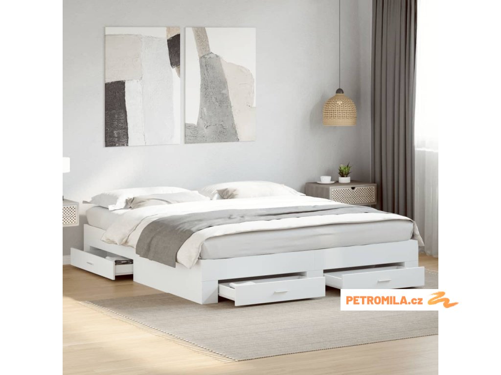 Rám postele se zásuvkami bílý 180 x 200 cm kompozitní dřevo