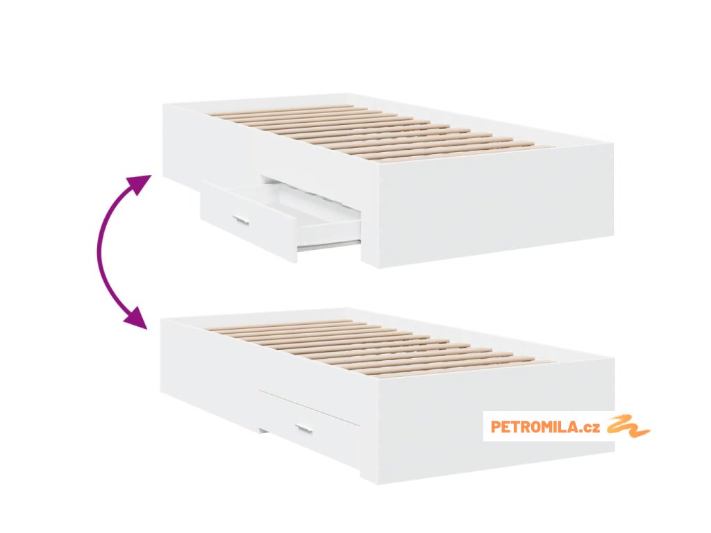 Rám postele se zásuvkami bílý 90 x 190 cm kompozitní dřevo