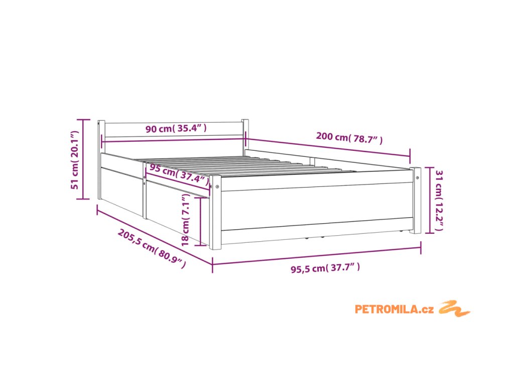 - Tento rám postele je vhodný pro matrace o rozměrech 90 x 200 cm.