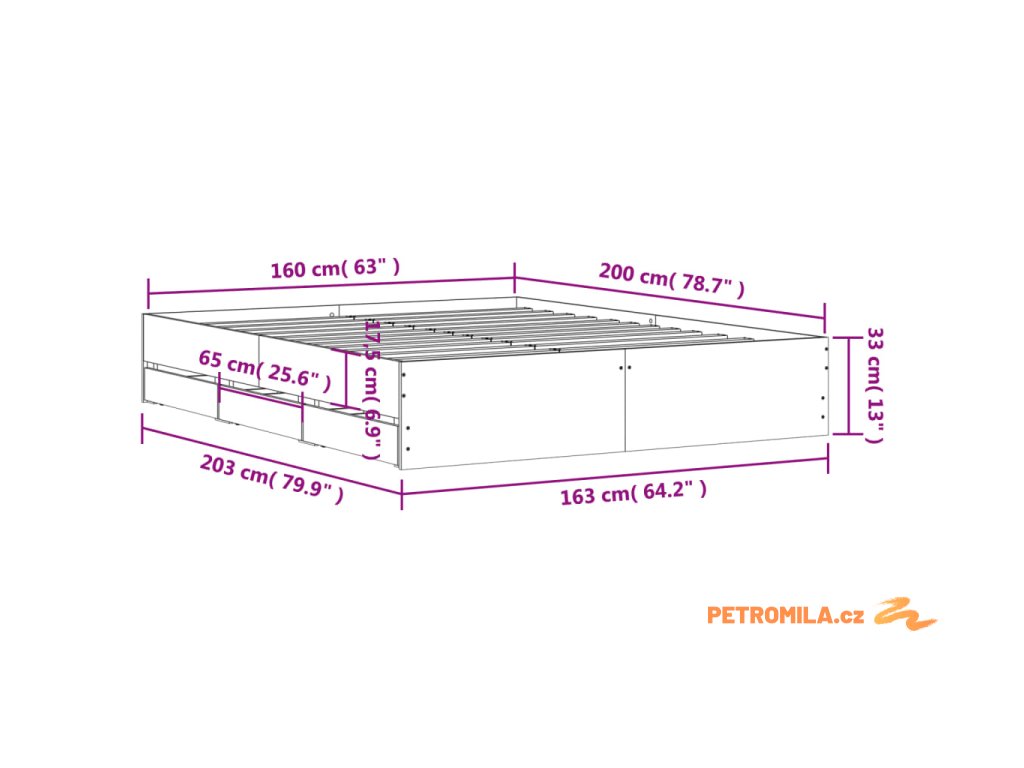 Rám postele se zásuvkami černý 160 x 200 cm kompozitní dřevo