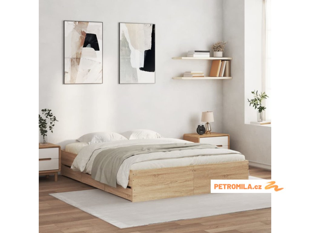 Rám postele se zásuvkami dub sonoma 150x200 cm kompozitní dřevo