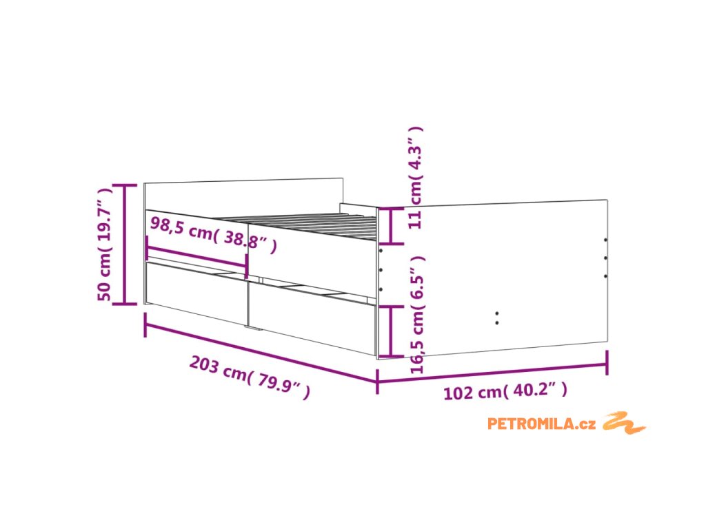 Rám postele se zásuvkami hnědý dub 100 x 200 cm