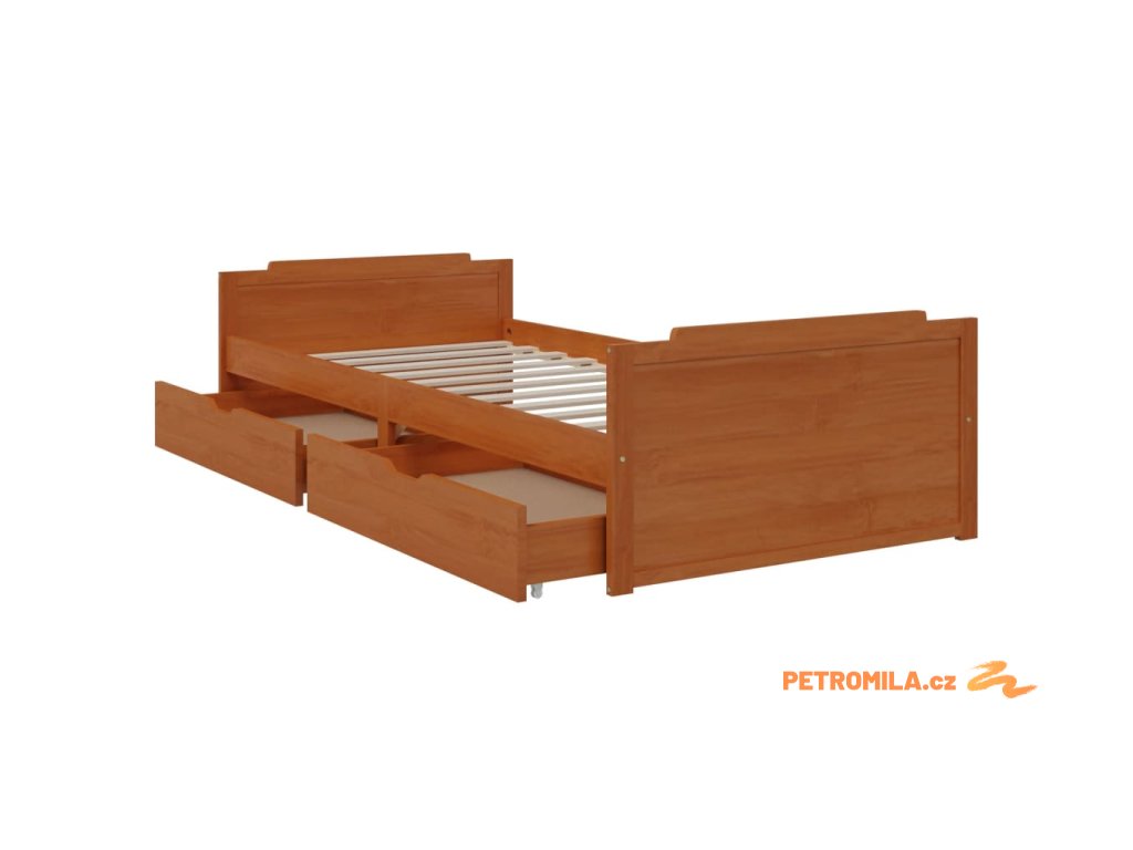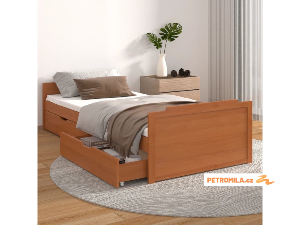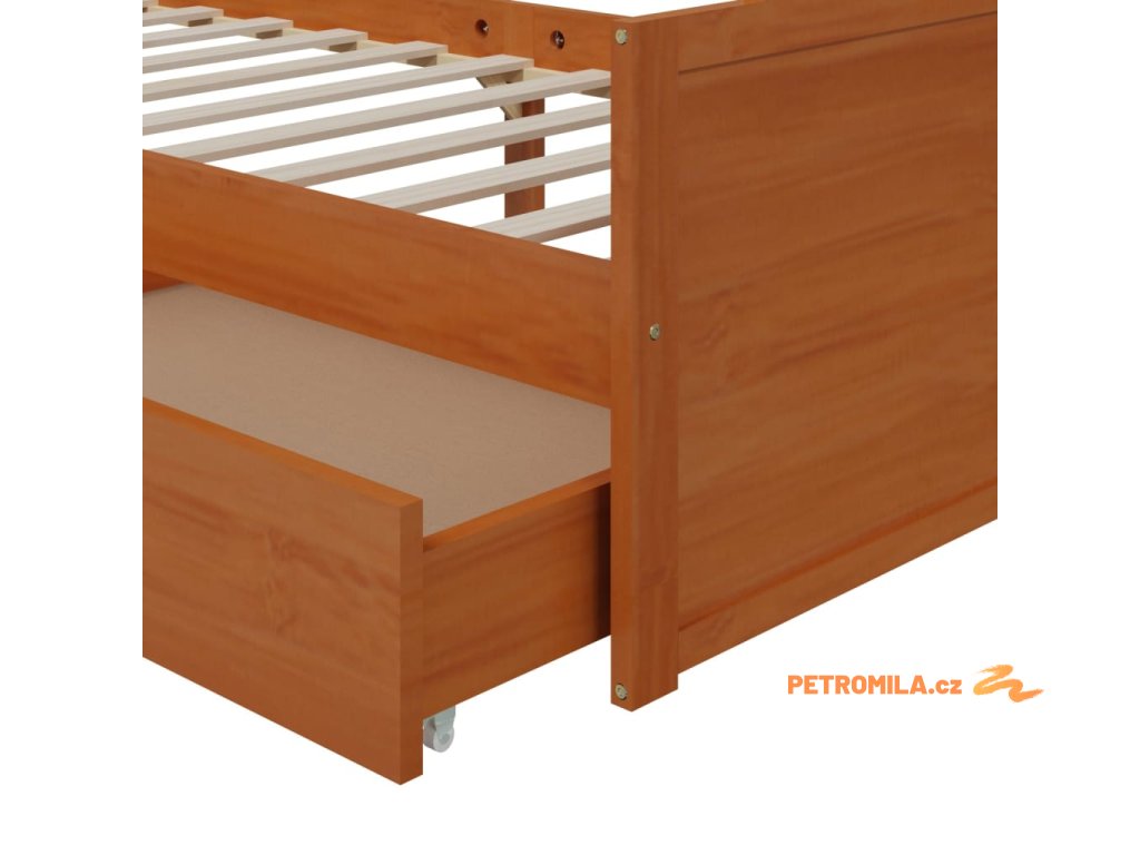 Rám postele se zásuvkami medově hnědý masivní borovice 90x200cm