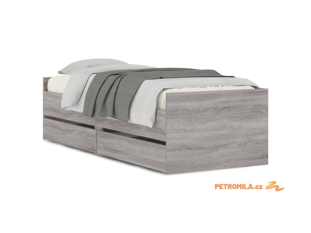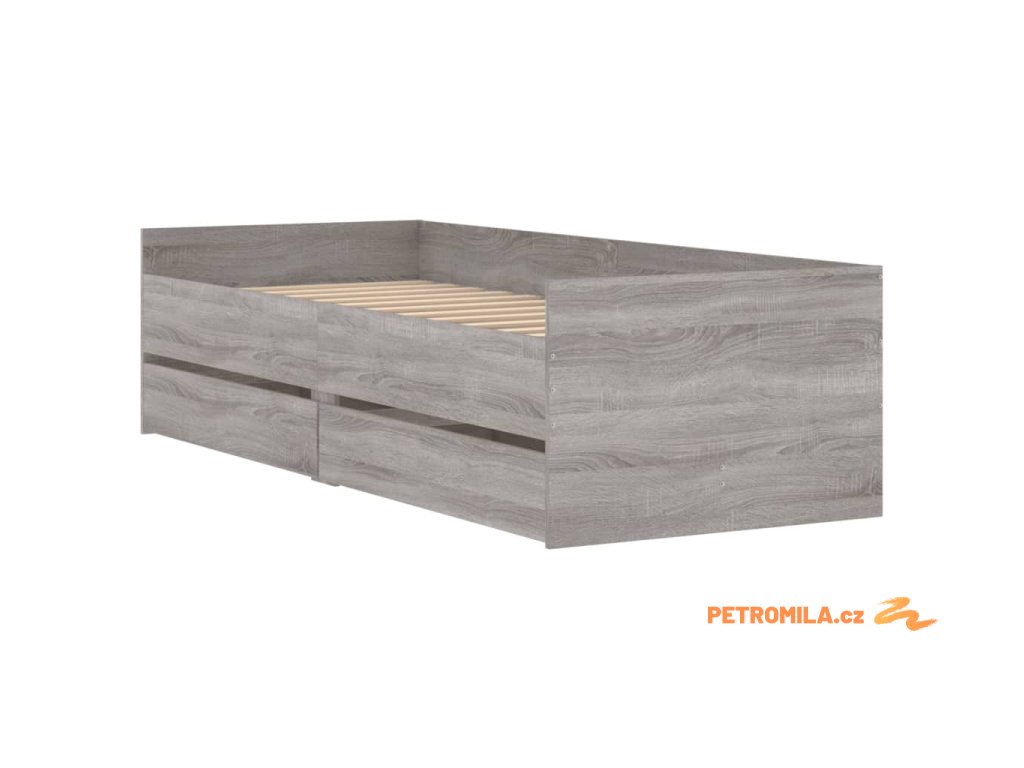 Rám postele se zásuvkami šedý sonoma 100 x 200 cm