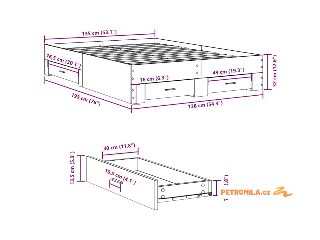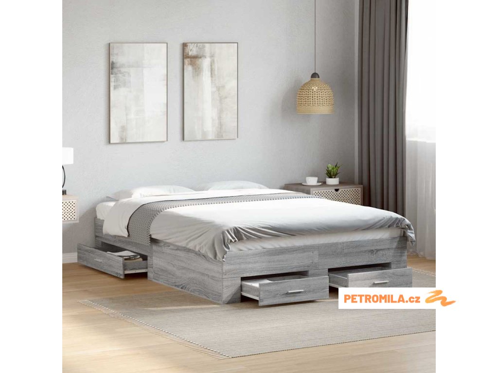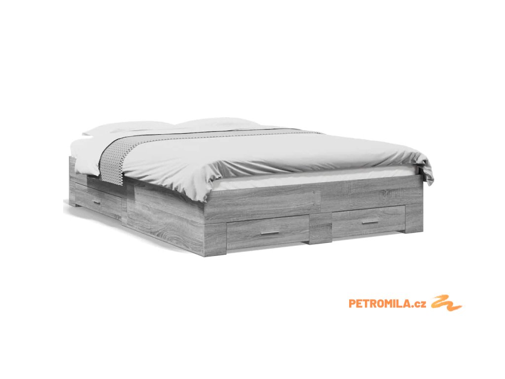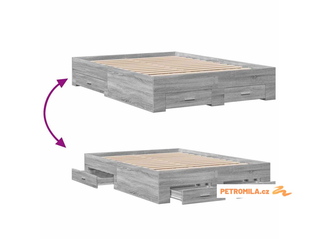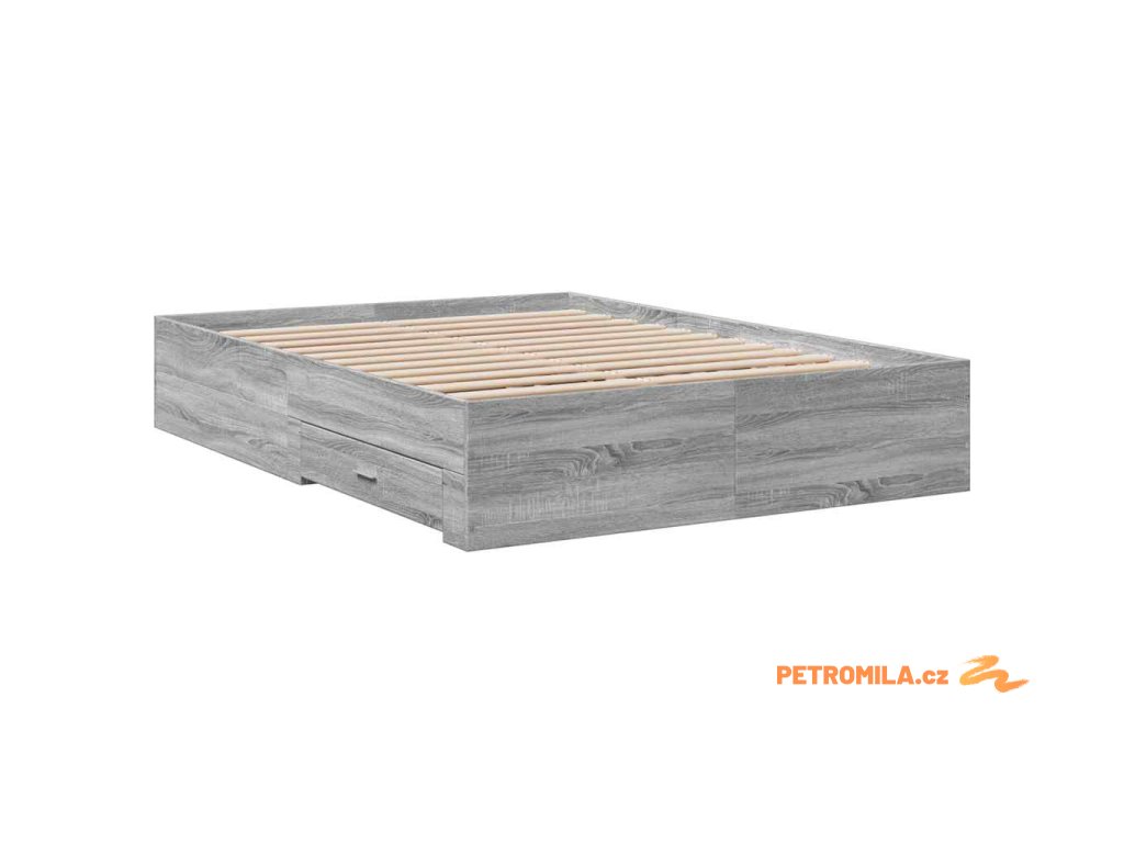Rám postele se zásuvkami šedý sonoma 135 x 190 cm kompozit