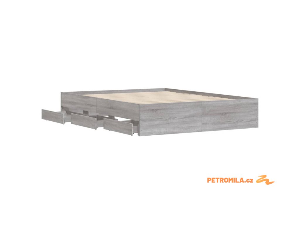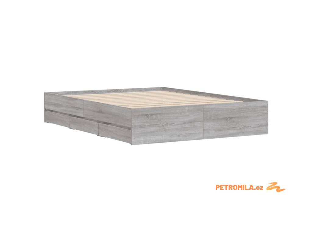 Rám postele se zásuvkami šedý sonoma 140 x 200 cm kompozit