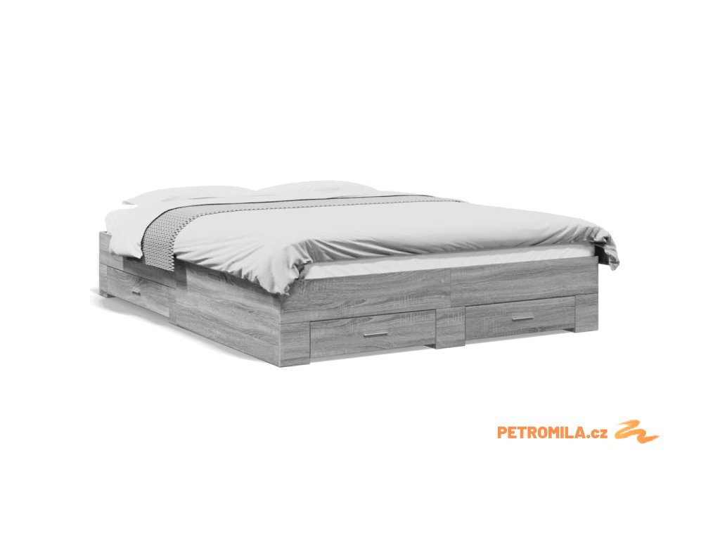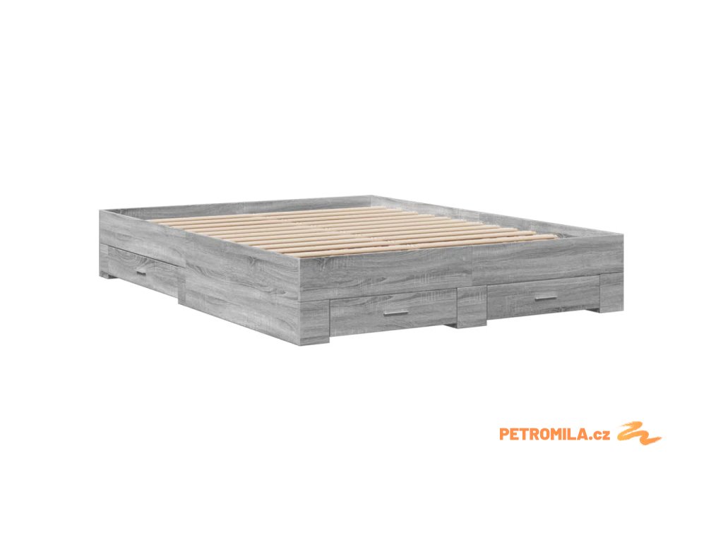Rám postele se zásuvkami šedý sonoma 160 x 200 cm kompozit