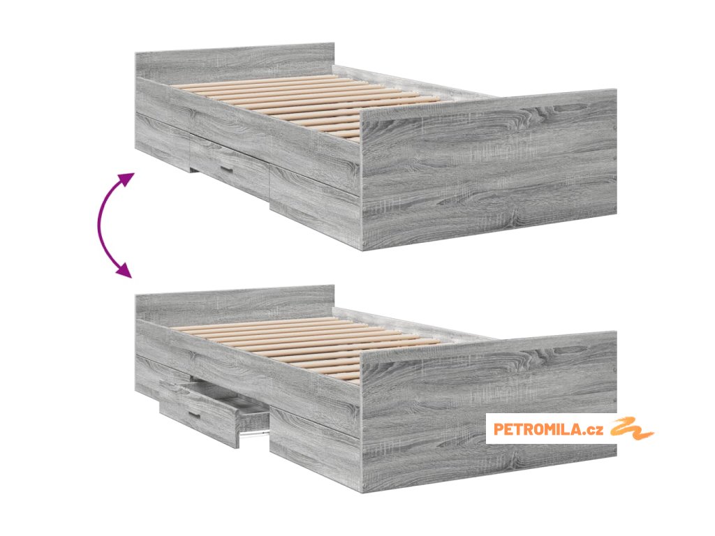 Rám postele se zásuvkami šedý sonoma 75x190 cm kompozitní dřevo