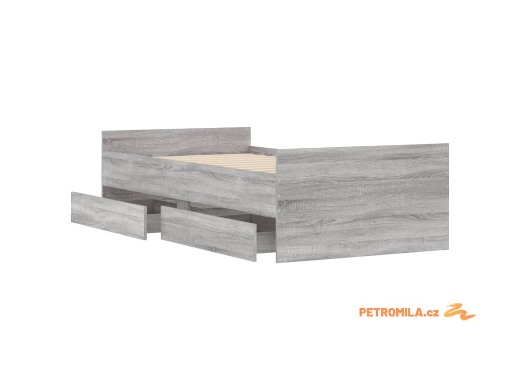 Rám postele se zásuvkami šedý sonoma 90 x 190 cm