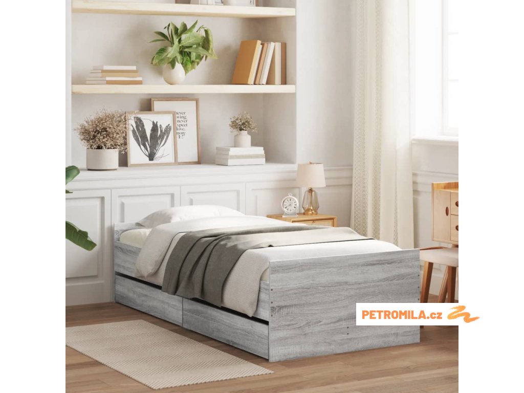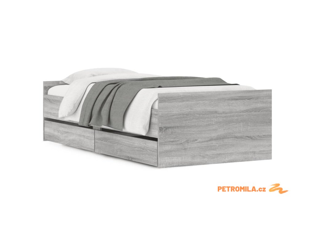 Rám postele se zásuvkami šedý sonoma 90 x 200 cm