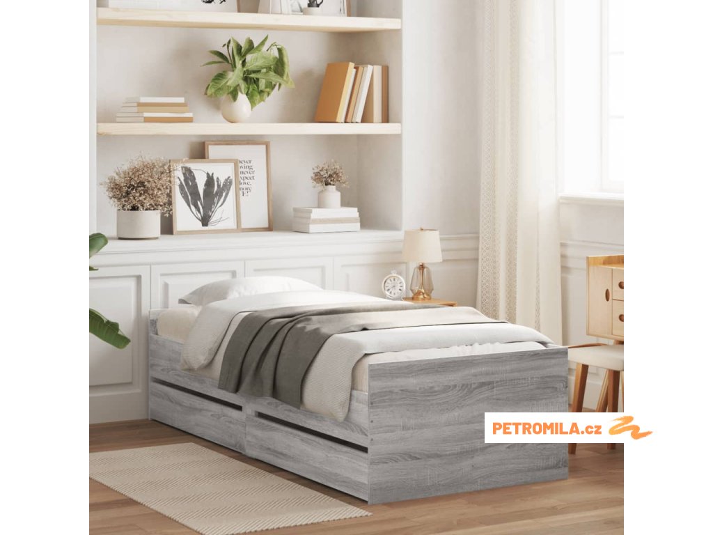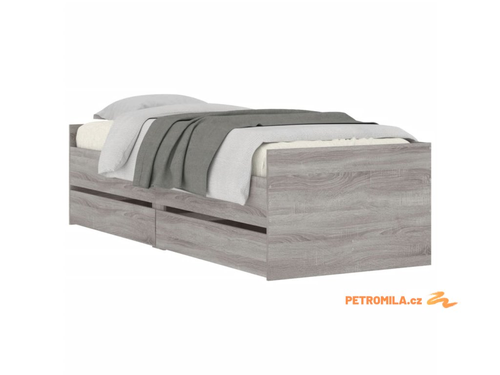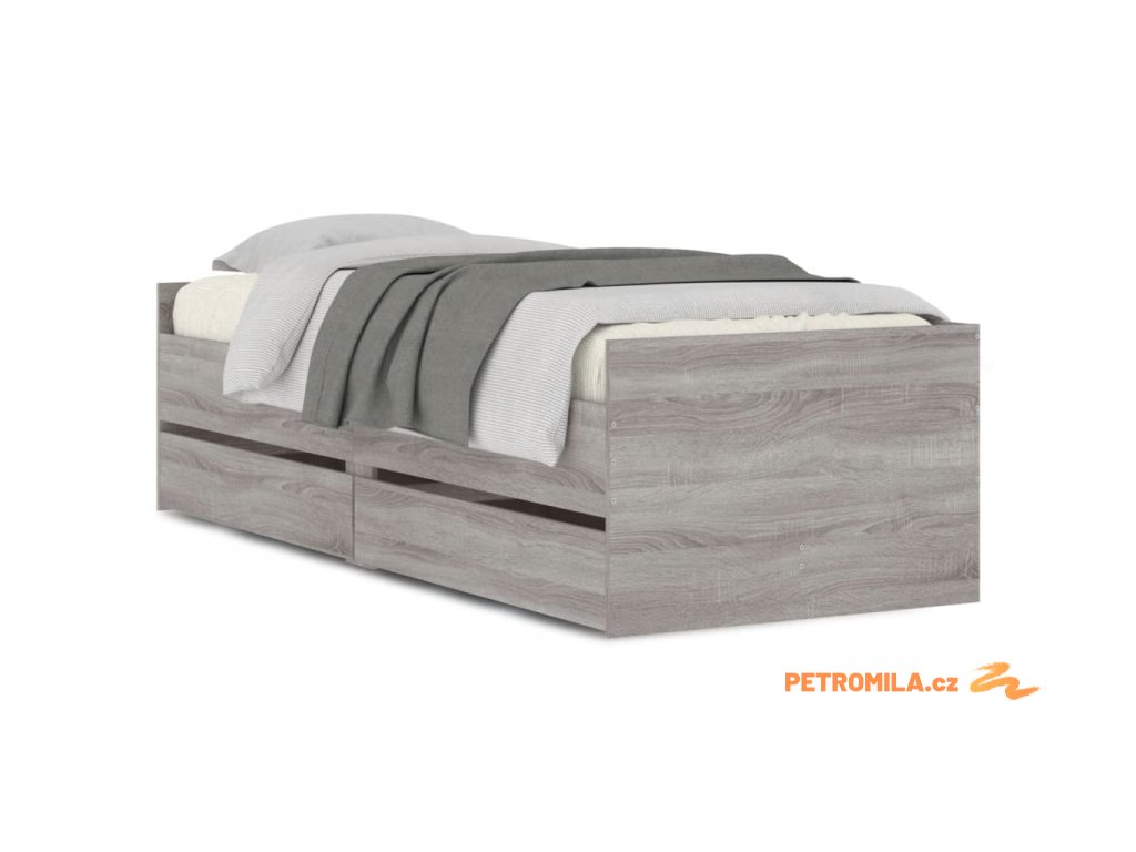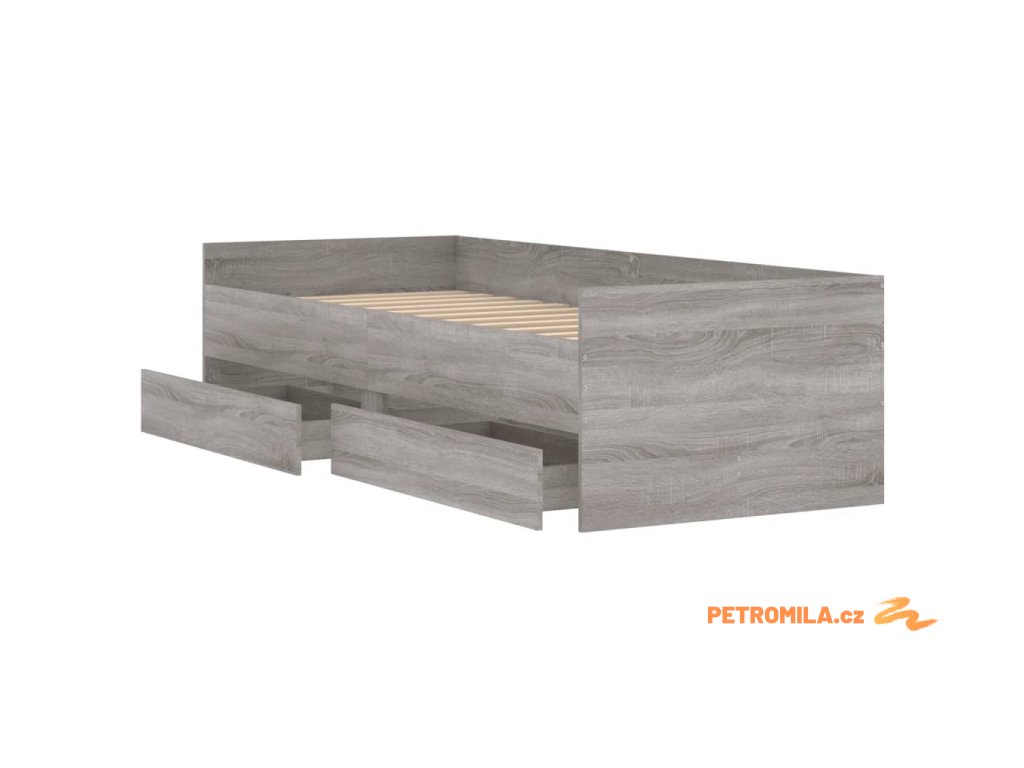 Rám postele se zásuvkami šedý sonoma 90 x 200 cm