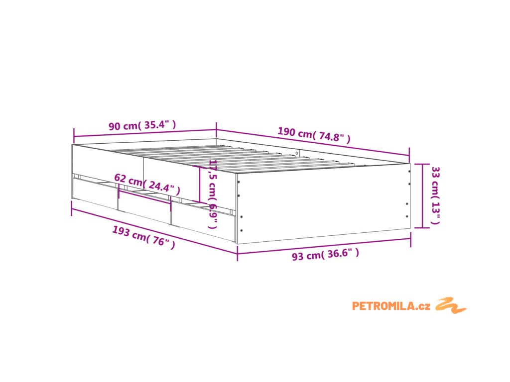 Rám postele se zásuvkami šedý sonoma 90x190 cm kompozitní dřevo