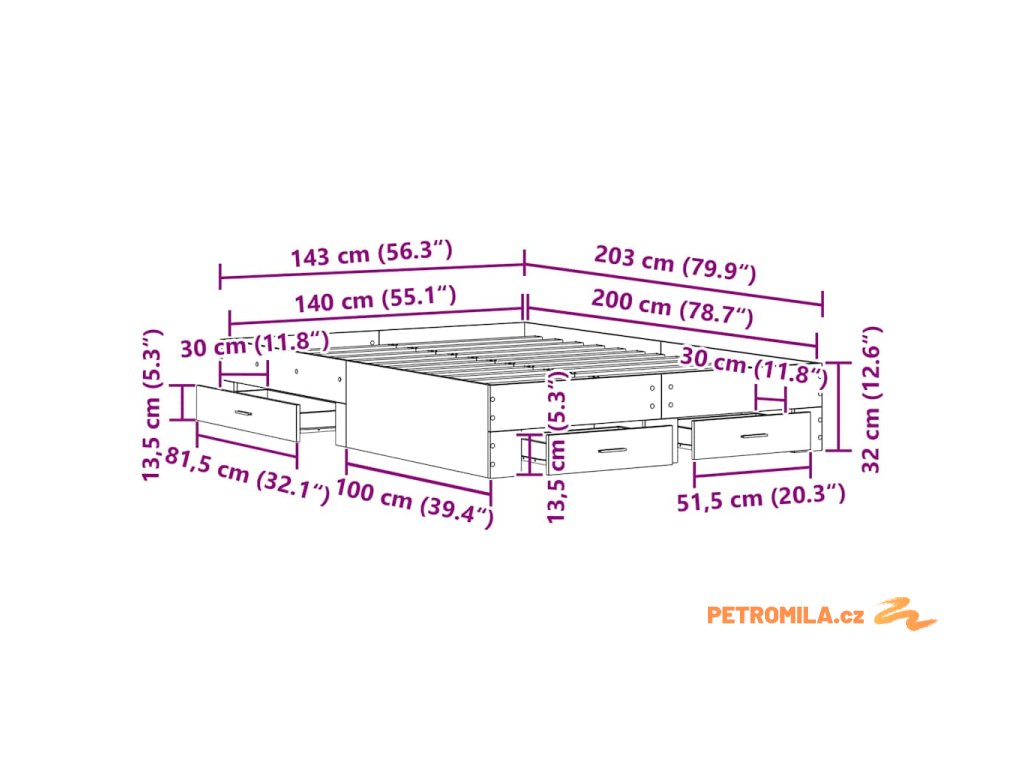 Rám postele se zásuvkou Černý dub 140 x 200 cm kompozitní dřevo