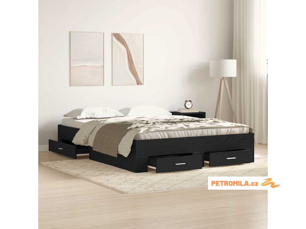 Rám postele se zásuvkou Černý dub 160 x 200 cm kompozitní dřevo