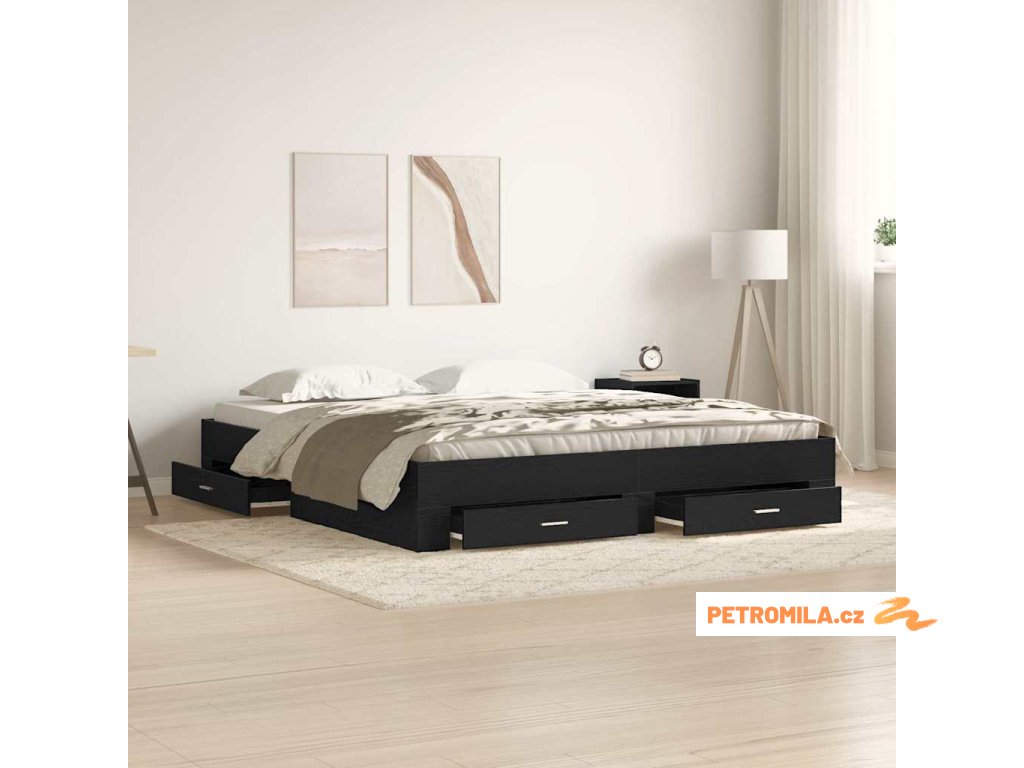 Rám postele se zásuvkou Černý dub 180 x 200 cm kompozitní dřevo