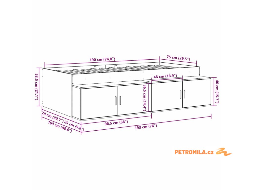 - Celkové rozměry: 193 x 103 x 53,5 cm (D x Š x V)