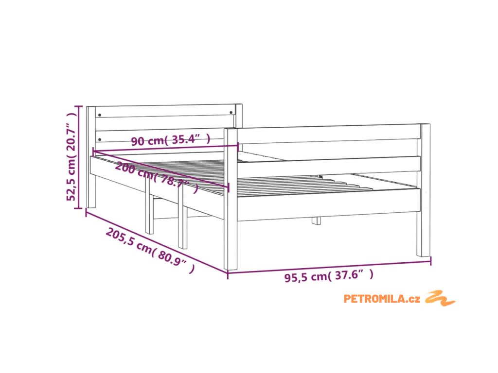 - Tento rám postele je vhodný pro matrace o rozměrech 90 x 200 cm.