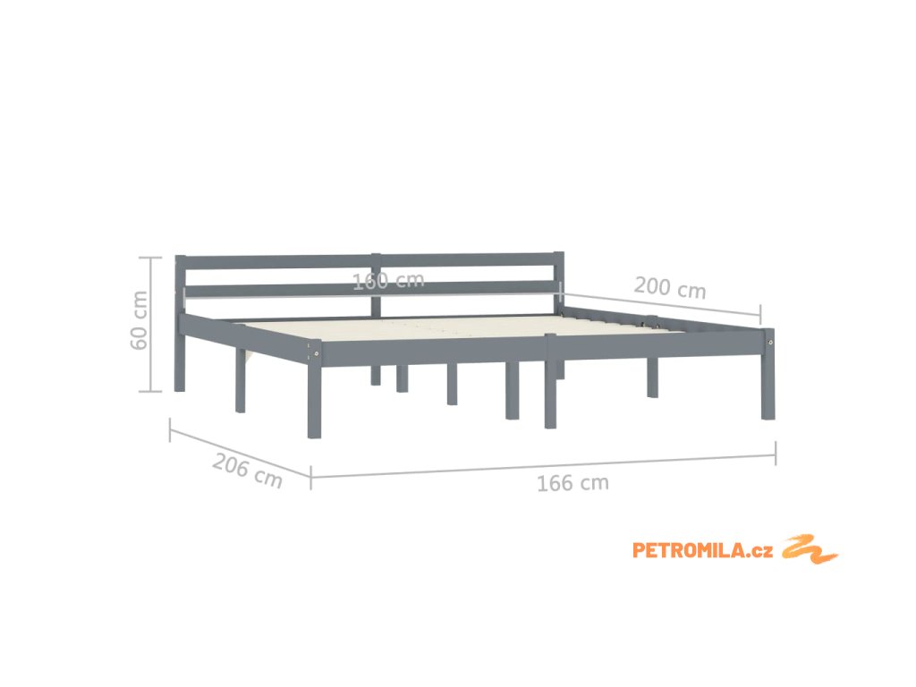 Rám postele šedý masivní borové dřevo 160 x 200 cm